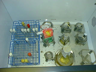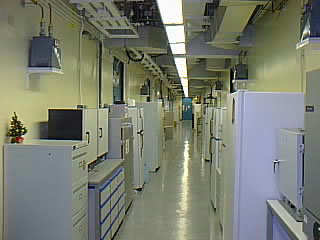 "Wow. Look at all those buildings. It looks like a big white castle!" he exclaimed. From the apartment balcony he could see students going to class. Stanley thought about the night before. "It sure would be nice to go visit Cambodia. Too bad there's only one of me." Uncle Robert, eating breakfast, looked up and thought about it. "You know, I have a friend who might help you go to Cambodia." Flat Stanley looked confused. "But I'm staying here in Hong Kong with you. How could I possibly go to Cambodia as well? There would have to be two of me!" With great curiosity, Uncle Robert and Flat Stanley walked to the university. They went into the big white building where all the students were going. They went up stairs, through hallways, up elevators, deeper and deeper into the building. At first they saw offices where teachers prepared their classes. Then they saw classrooms full of students. Finally they came to a sign that said, LABORATORY and they walked in. Inside the laboratory, they saw people in white coats walking around and working at benches. They saw different kinds of machines all over the place. People seemed to be putting things into and out of the machines, writing in books, typing in computers -- all working very hard. It seemed quite mysterious to Stanley.