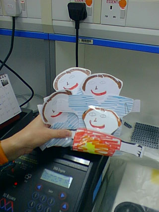 Stanley was amazed. He was beside himself -- beside three copies of himself! "You did it! I mean, you REALLY did it. There aren't just two of me, there are four of me!" He said. "If I stay in Hong Kong, and one copy goes to Cambodia, what happens to the other two?" Tina replied, "Well one of you can come with me to England." Stanley thought it a swell idea. Uncle Robert added, "And another copy of you can go with another friend to the island of Borneo." Stanley thought that swell as well, but he wasn't sure where Borneo was, or if he'd like it. Leaving one of the copies with Tina, Stanley and Uncle Robert bid goodbye, and made their way home. What a busy day -- making DNA copies. Click here to go with Hong Kong Flat Stanley... |