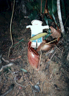 After a quick stop for breakfast, Virginia, Ellie, Stanley and Kin started their descent. "What's this funny looking thing," asked Stanley after a while. "Oh, you have found a pitcher plant," Kin told Stanley. "Can you guess why we call it that?" "Well, there is water inside this round thing. Maybe that is a pitcher," guessed Stanley. "Exactly, Stanley. The plant uses the water in the pitcher to catch insects. The insects die, and the plant slowly eats them by absorbing the bugs' nutrients." "Wow!" said Stanley. "Hey, where did Ellie and Virginia go." "They are running down the mountain," said Kin. "I think they are ready to go to the beach." "The beach?" asked Stanley. "I love beaches!"